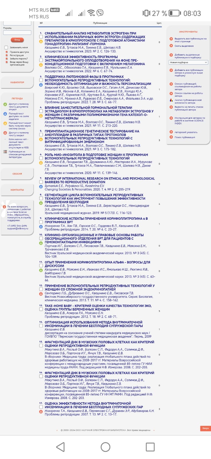 - Автор более 30 статей на тему репродукции, Индекс Хирша-3.